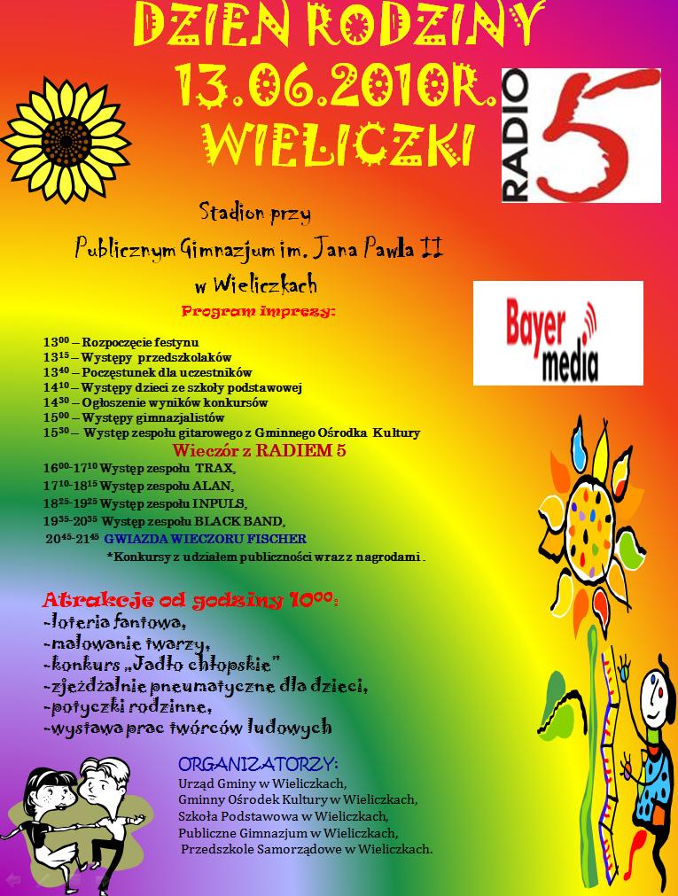 13 czerwca 2010 roku zapraszamy na imprezę pt "Dzień Rodziny w Gminie Wieliczki".