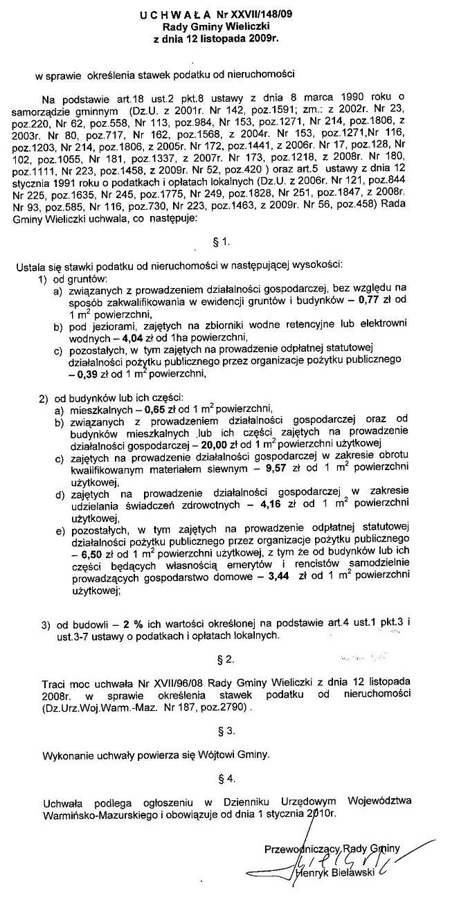 Uchwała Nr XXVII/148/09 w sprawie określenia stawek podatku od nieruchomości