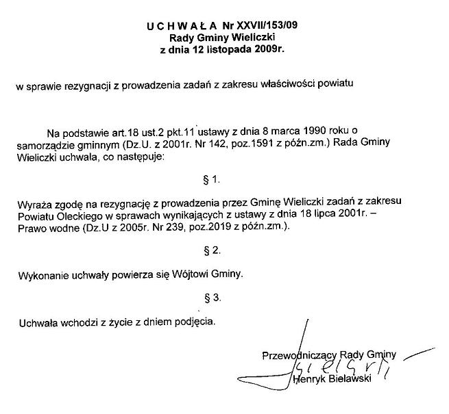 Uchwała Nr XXVII/153/09 w sprawie rezygnacji z prowadzenia zadań z zakresu właściwości powiatu